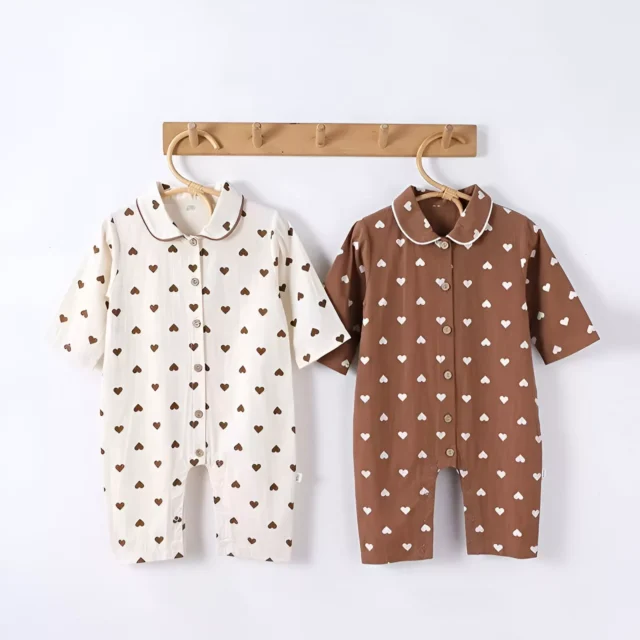 Whether it’s tummy time, a stroll in the park, or just a cozy day at home, this romper is made to keep your baby comfy and cute. Its versatile design makes it ideal for newborn photoshoots, baby showers, or everyday wear. The neutral, heart-themed print adds a sweet charm that suits any season and every setting.