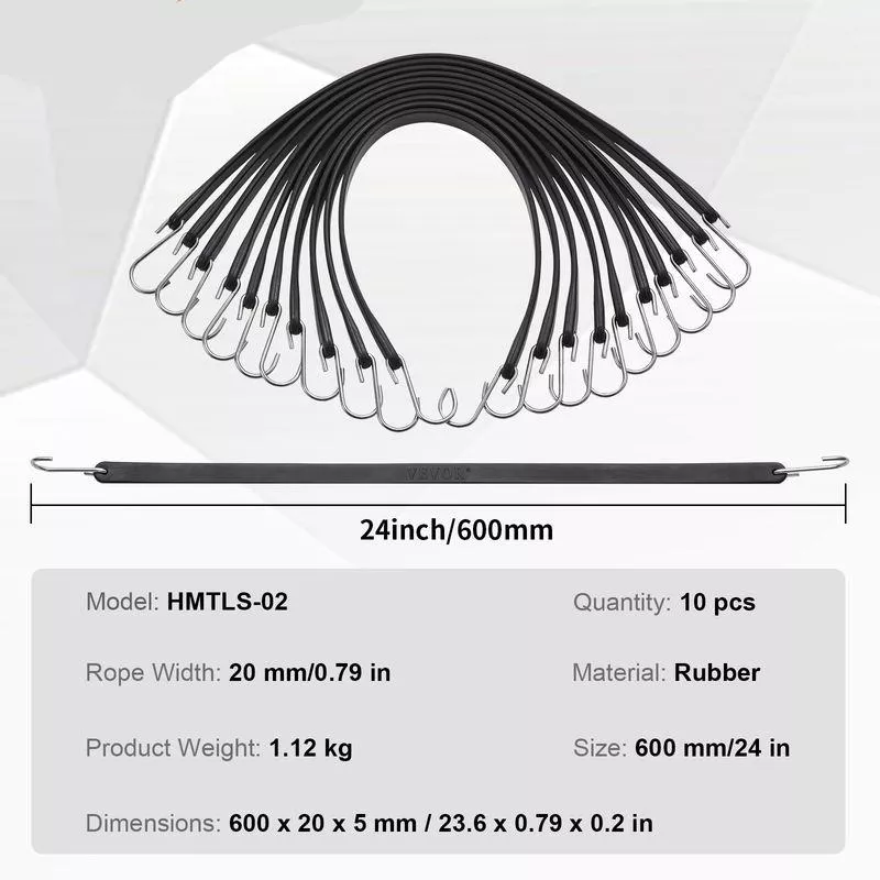 Keep your cargo safe and your storage organized with the 10-Piece Flat Bungee Cord Set. Designed for heavy-duty use, these premium elastic cords provide superior stretch and strength, making them perfect for securing tarps, truck loads, camping gear, and more. Whether you’re a traveler, truck driver, camper, or homeowner, these bungee cords are a must-have for hassle-free storage and transport. With steel S-hooks for added security, they ensure a firm grip even on bumpy roads. Reliable in all weather conditions, they are built to last and perform when you need them most.