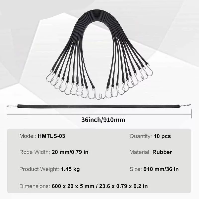 • Heavy-Duty Elasticity – 20mm thick bungee cords provide superior stretch, fitting items of various shapes and sizes.