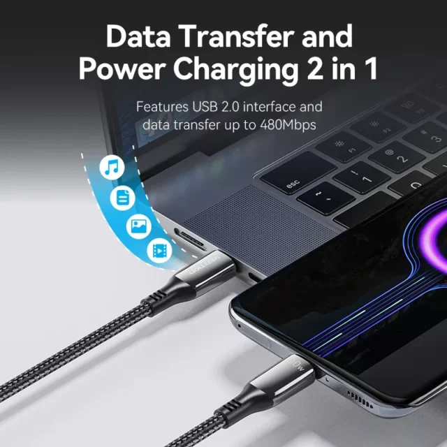 • Durable Construction: The cable features a TPE+Cotton braided jacket, ensuring it’s both flexible and durable, while the zinc alloy shell provides extra protection against wear and tear.