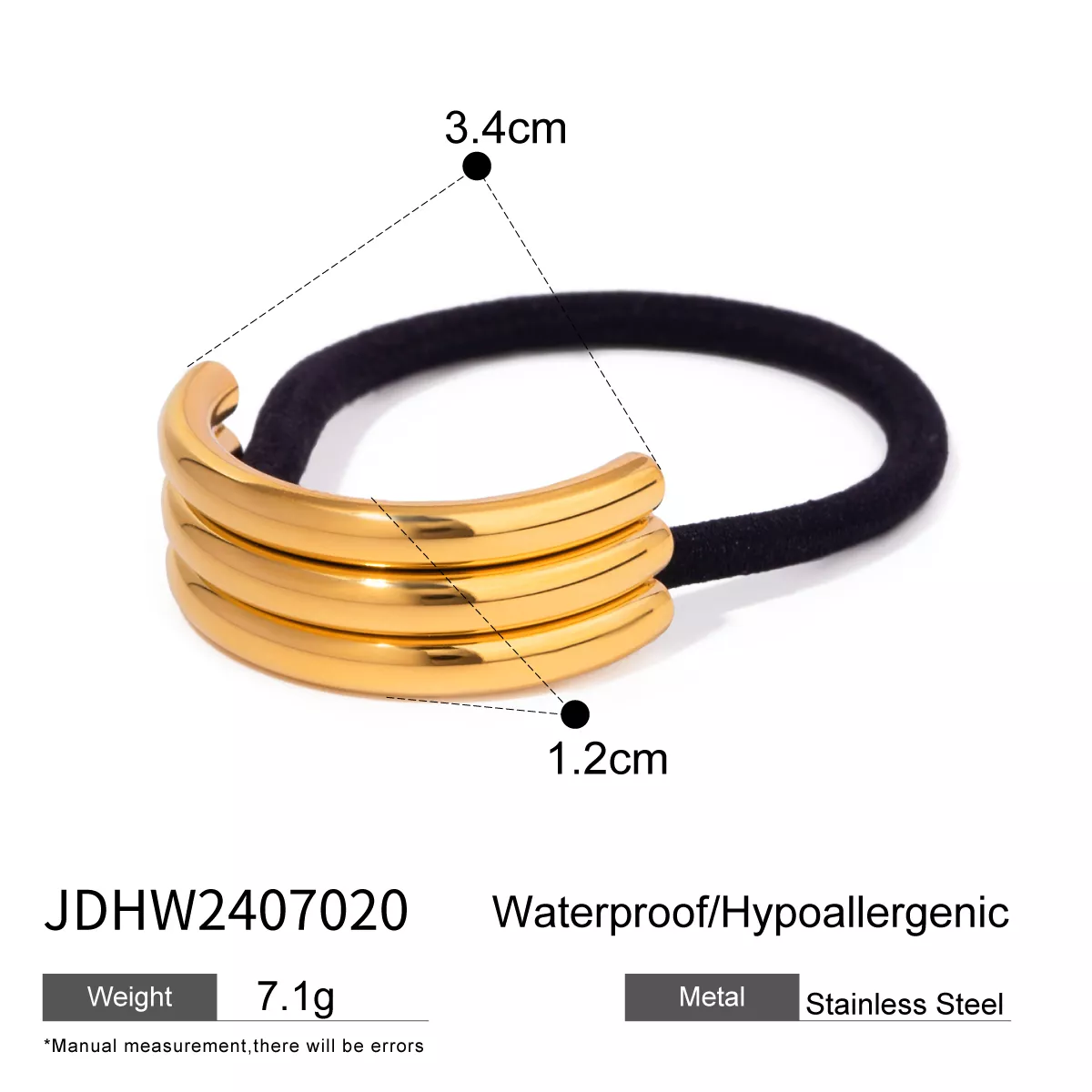 Turn your daily ponytail into a statement with our 18K Gold Plated Multi-Layer U-Shaped Hairbands. Designed to blend elegance and function, these chic hair accessories feature a hollow steel tube design wrapped in sleek black rubber, giving them a timeless, vintage flair. Whether you’re headed to a romantic anniversary dinner, a glamorous wedding, or a casual party with friends, this hairband adds a refined finishing touch to your look. And thanks to its minimalist geometric silhouette, it complements any hairstyle effortlessly.