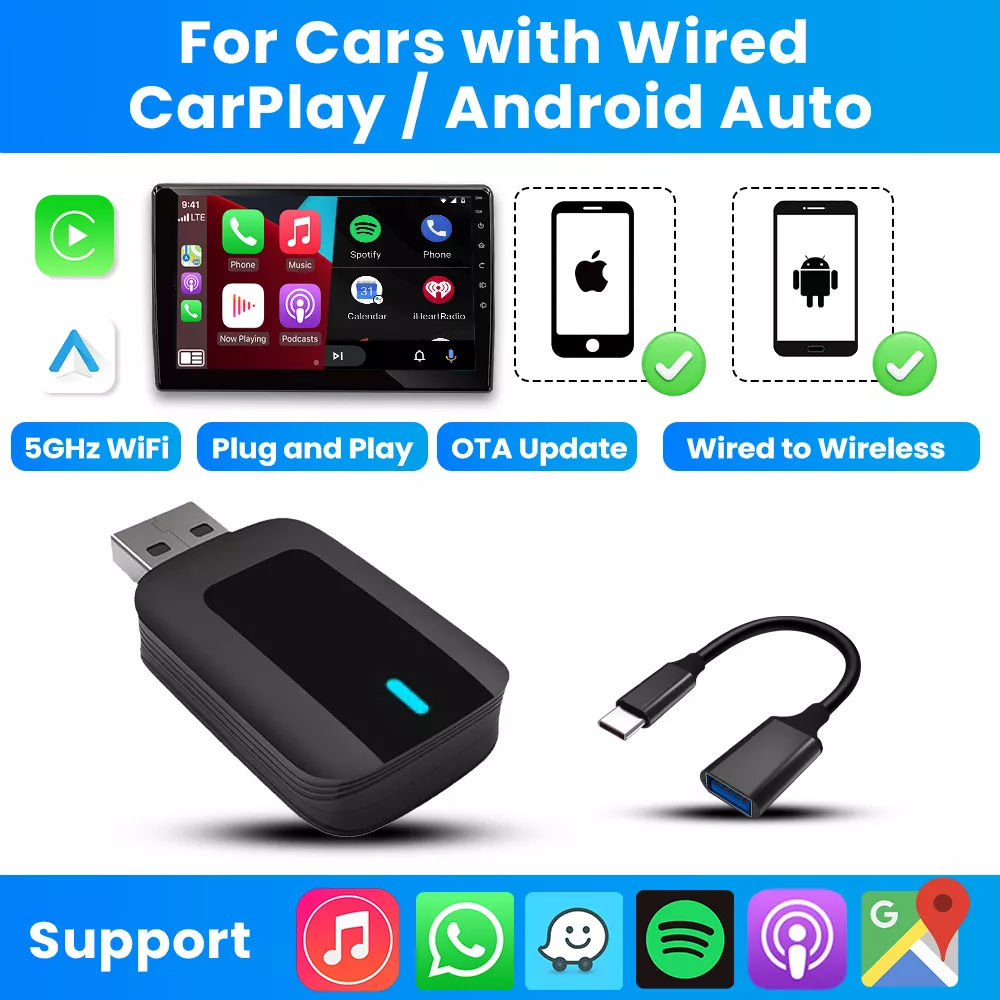 • Wireless CarPlay & Android Auto: Convert your wired system into a wireless experience effortlessly.
