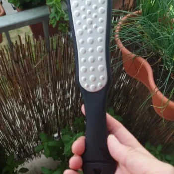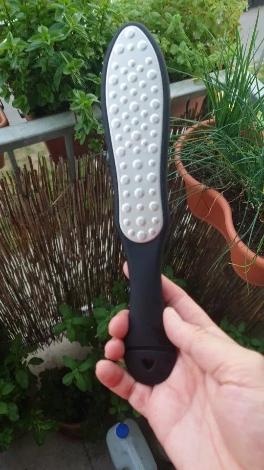 Our 3-in-1 pedicure tool is expertly crafted with laser-cut technology, featuring two-sided stainless steel surfaces that make quick work of dead skin and calluses. The coarse side effectively removes tough, built-up skin, while the fine side smooths and polishes your feet to perfection. The integrated mini-file is ideal for those delicate, hard-to-reach areas, ensuring every inch of your feet gets the attention it deserves. The ergonomic handle provides a comfortable, non-slip grip, making the tool easy and safe to use on both wet and dry feet.