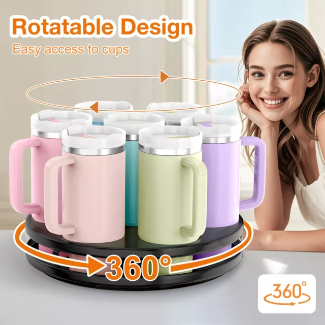 Transform your space and keep your drinkware perfectly arranged with this easy-to-use, rotating tumbler organizer. It’s time to take your organization to the next level—grab yours now and enjoy a clutter-free, more efficient kitchen!