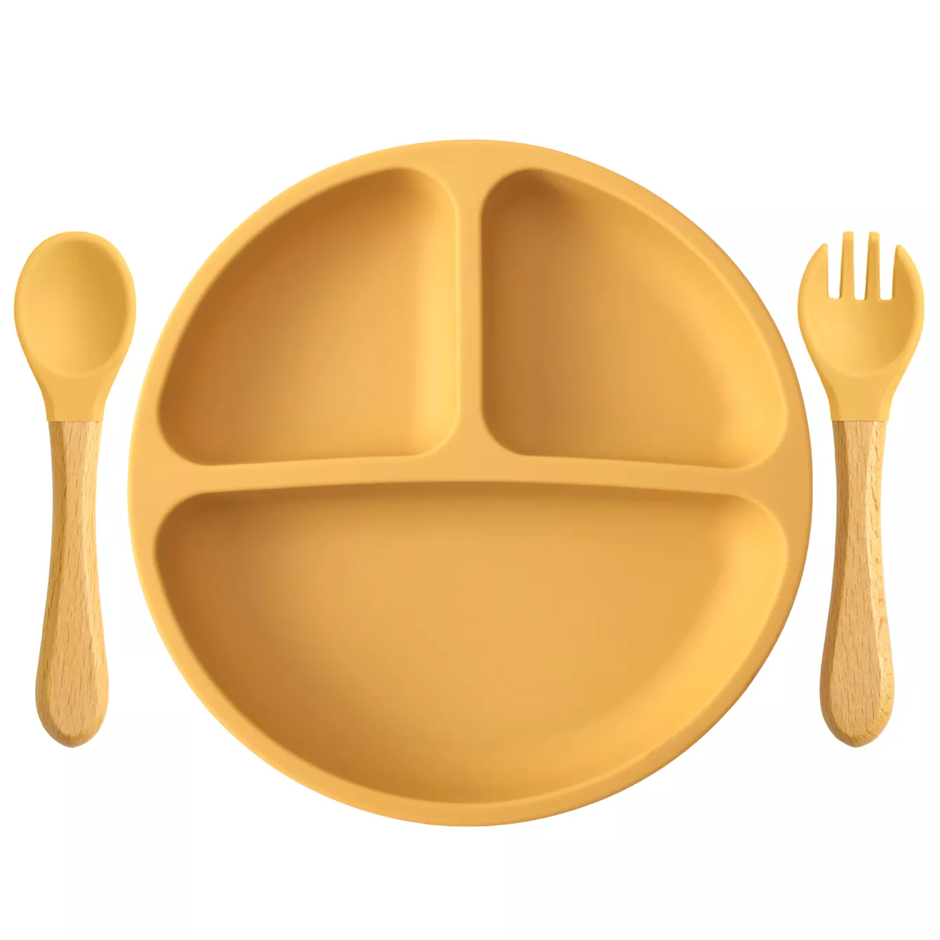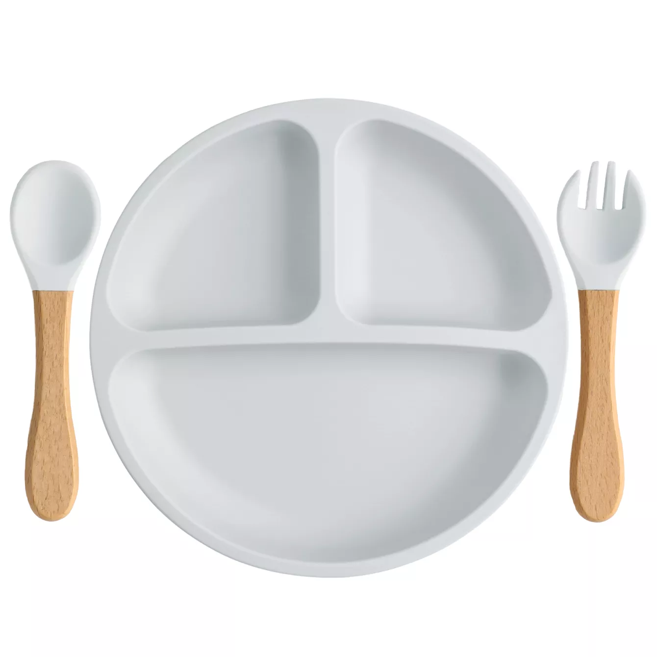 Turn mealtime into a stress-free, joyful bonding experience with our 3PCS Baby Silicone Feeding Set. Thoughtfully designed for tiny hands and growing appetites, this charming tableware set includes a soft silicone divided plate, a smooth wooden-handled spoon, and a fork – all tailored to make self-feeding safe, easy, and fun. Whether you’re introducing solids or encouraging toddler independence, this set is a must-have addition to your baby’s daily routine.