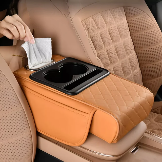 Say goodbye to messy car interiors and uncomfortable long drives. This 5-in-1 Car Armrest Pad is your all-in-one solution to transform your car’s center console into a hub of comfort and organization. Crafted with a soft-touch leather surface, this multifunctional pad offers support for your elbow, a hidden tissue box, smart storage space, and an elevated handrail design that adds both style and functionality to your vehicle.