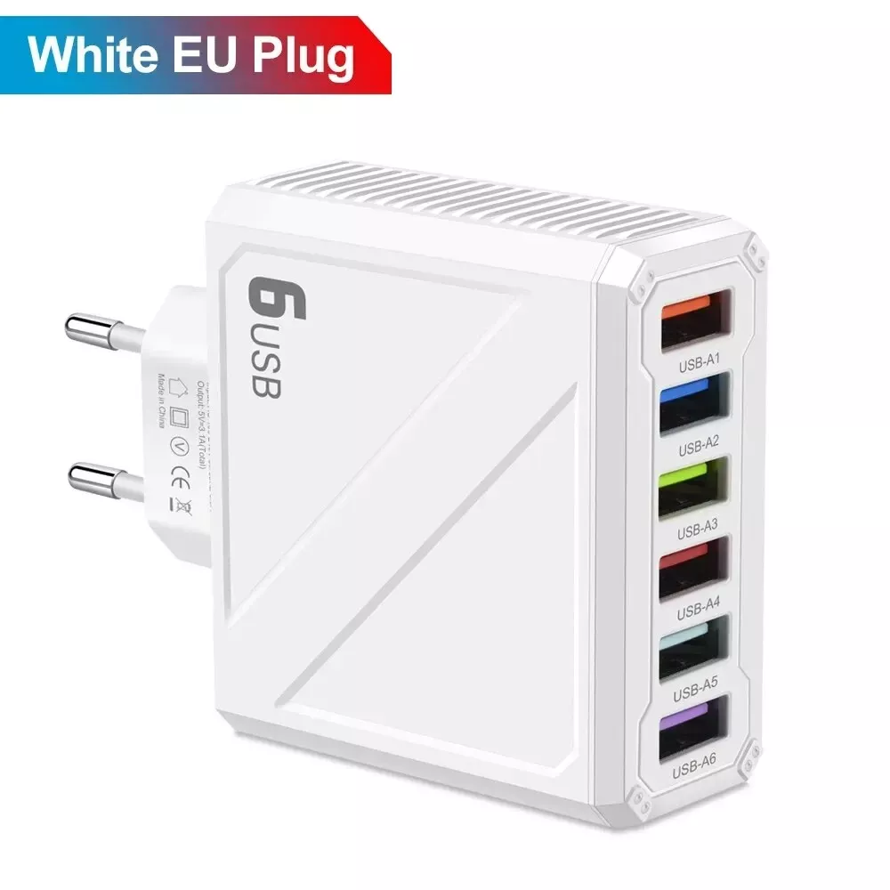 6-Port USB Wall Charger 3.1A Fast Charging Adapter for Phones & Devices