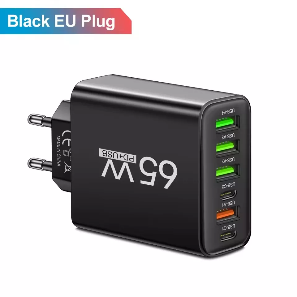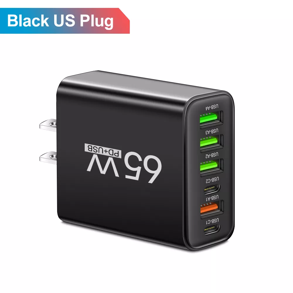 65W 6-in-1 Fast Wall Charger with 4 USB & 2 Type-C Ports