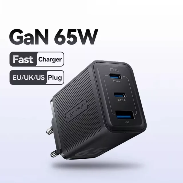 65W GaN PD Fast Charger with USB-A and USB-C Ports