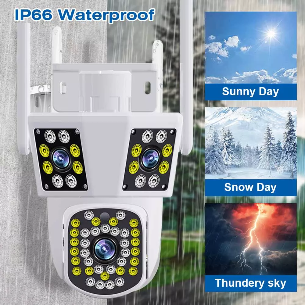 Experience next-level home and property protection with this 6K 12MP Outdoor WiFi Security Camera. Designed to capture crystal-clear images and video in stunning ultra-high definition, this camera ensures you never miss a detail. Its unique triple-lens setup combines three 4MP lenses to deliver an impressive 12MP total resolution, giving you rich, vibrant visuals both day and night. Whether you want to monitor your front yard, parking lot, or warehouse, this camera offers reliable surveillance with remarkable clarity.