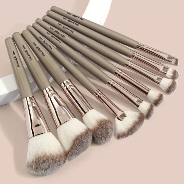 The brushes are made with ultra-soft, dense synthetic bristles that feel gentle against your skin, making them perfect for even the most sensitive skin types. Each brush is expertly crafted to deliver the perfect touch—whether you’re working with liquid, cream, or powder products. The sleek champagne-toned handles add a touch of elegance to your vanity while offering a comfortable grip for better control.