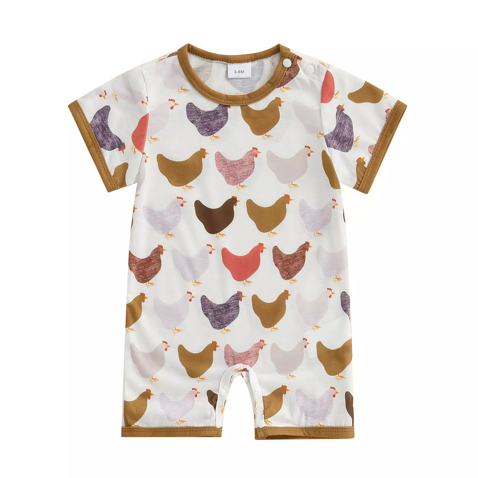 Don’t miss out on this must-have summer essential. Add this charming chicken print romper to your cart today and give your baby the perfect blend of fun and comfort for the season ahead.