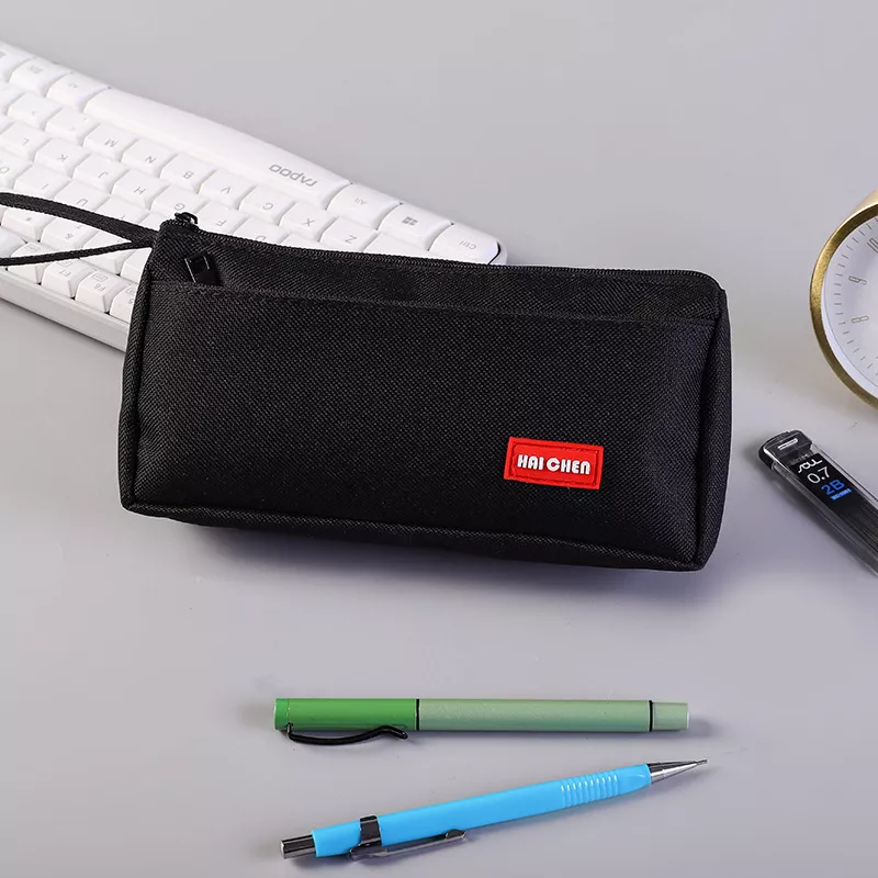Black Oxford Cloth Pencil Case for School and Office Supplies