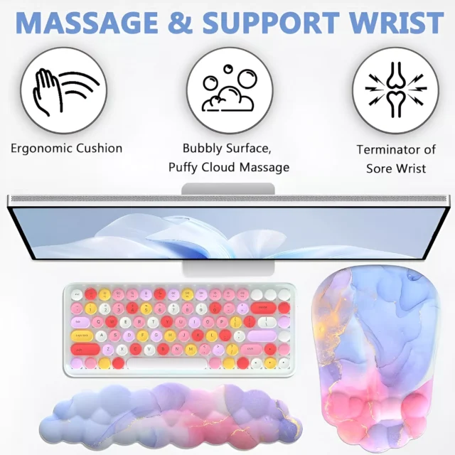 Say goodbye to wrist strain and hello to everyday comfort with our Cloud Memory Foam Wrist Rest and Cute Marble Mouse Pad Set. Designed to turn your workspace into a haven of support and style, this set isn’t just functional—it’s a treat for your hands and your eyes. Whether you’re working from home, gaming late into the night, or tackling creative projects, this wrist support combo is your new desk essential.