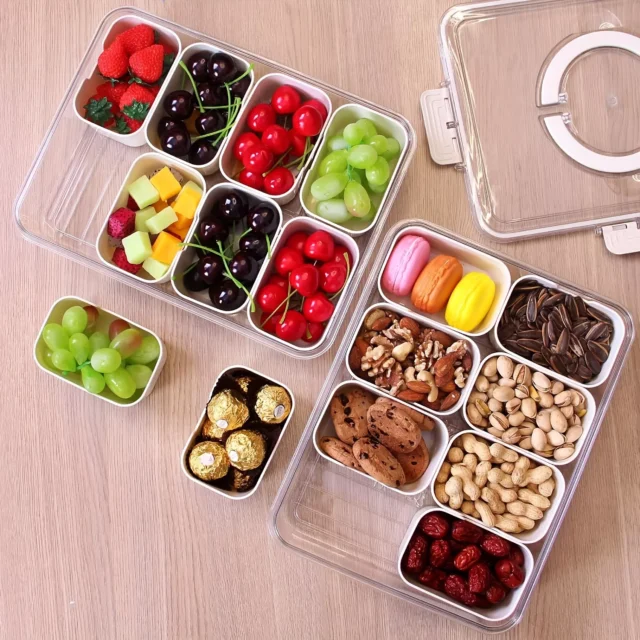 Keep your snacks fresh, organized, and ready to share with this beautifully designed Divided Snack Serving Tray with Lid and Handle. Whether you’re hosting a party, packing for a picnic, or just want to keep your pantry or fridge clutter-free, this storage container is a must-have kitchen accessory. Made from high-quality, food-safe materials, it’s as durable as it is convenient. With eight separate compartments and a sturdy, transparent lid, it’s perfect for neatly storing a variety of treats — all in one sleek, portable box.