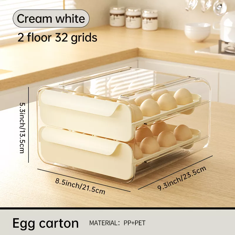 Keep your eggs fresh and neatly stored with this double layer refrigerator egg storage box. Designed to fit conveniently in your fridge drawer, it maximizes space while protecting your eggs from damage. This practical kitchen accessory is perfect for anyone looking to streamline their food storage with a clean, modern touch.
