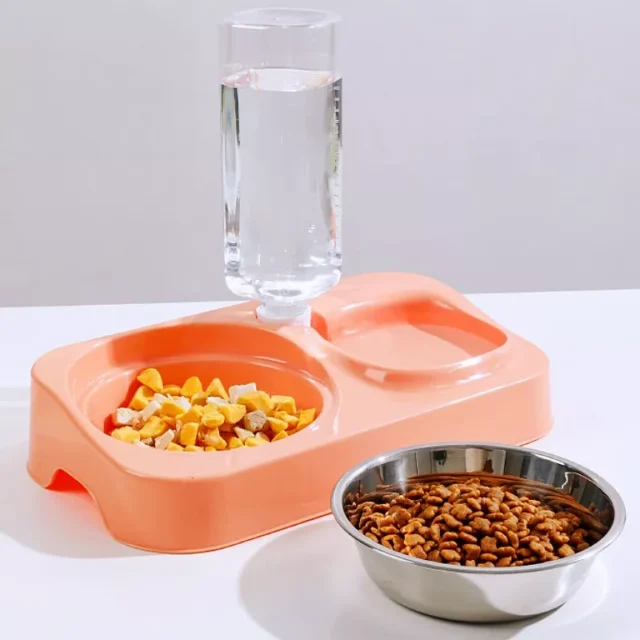 This set includes two stainless steel bowls nested in a stable plastic base—one for food and one connected to a gravity-fed water system. The automatic refill function keeps the water bowl topped off as your pet drinks, ensuring they stay hydrated without constant monitoring. The rust-resistant bowls are removable for quick cleaning, while the wide base prevents sliding and tipping during use. With a 500ml capacity, it’s ideal for small to medium-sized pets.