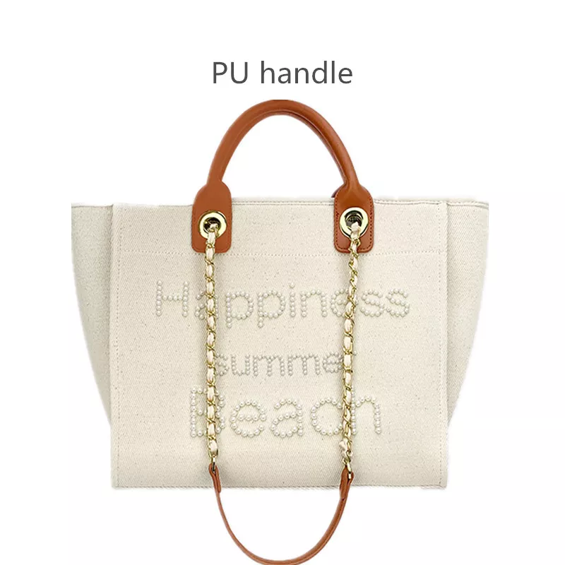 Elevate your everyday style with this eye-catching beaded pearl canvas tote – a perfect blend of fashion and functionality. This large-capacity shoulder bag is crafted with meticulous attention to detail, making it a must-have accessory for modern women who want practicality without sacrificing elegance. Designed with soft, durable canvas and finished with genuine leather handles, this bag brings a fresh, high-fashion feel to your wardrobe while offering the space and strength you need on the go.