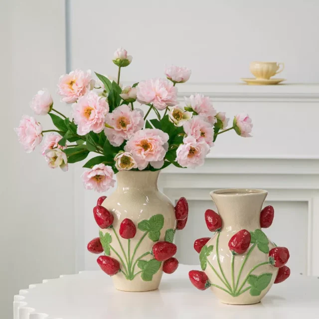 Brighten Your Home with the Embossed Strawberry Ceramic Vase