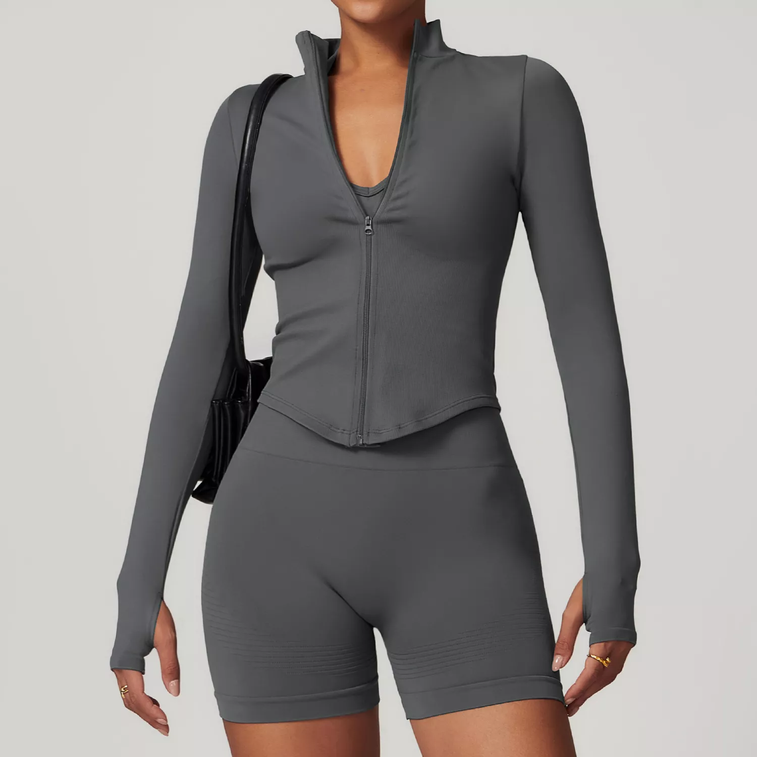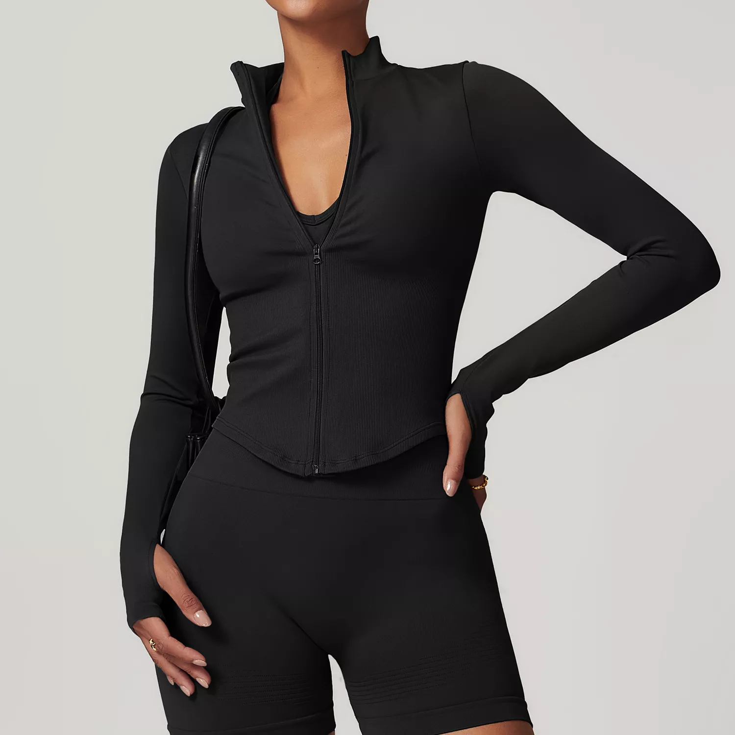 Full Zip-Up Long Sleeve Yoga Jacket with Thumb Holes