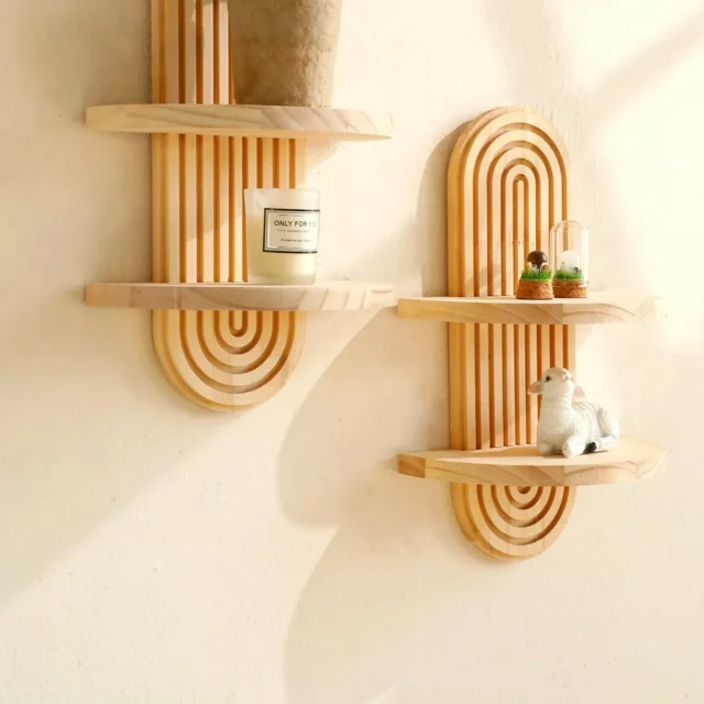 • Geometric Wall-Mounted Shelves: Perfect for those who love contemporary and minimalist décor, these shelves create an eye-catching focal point in any room.