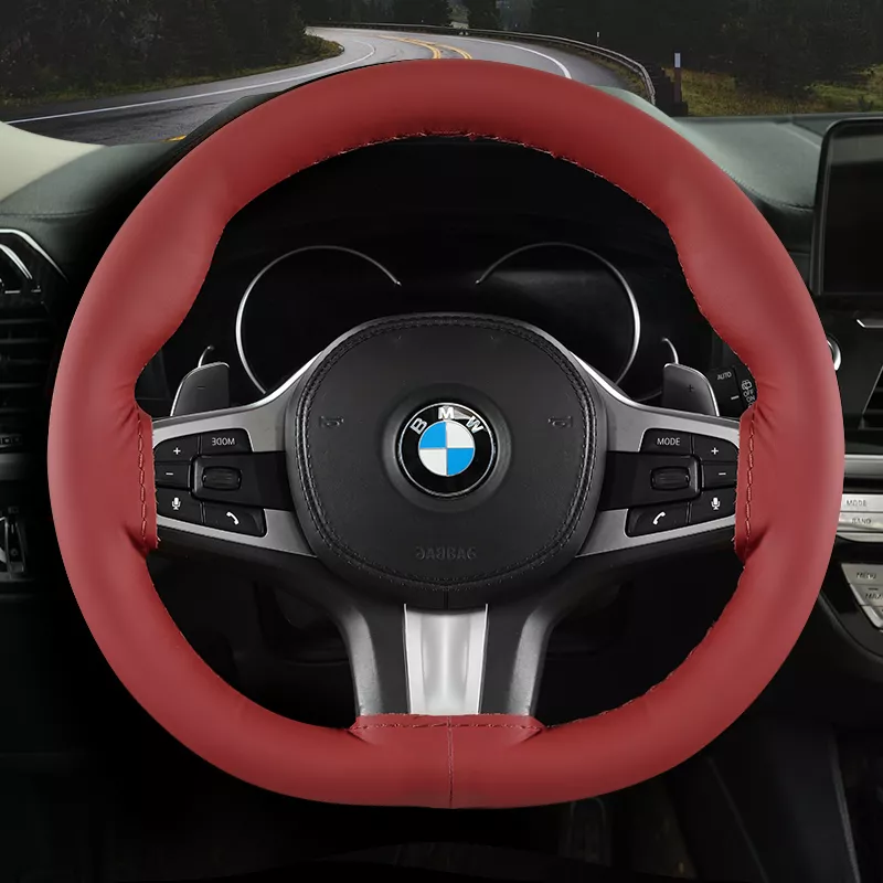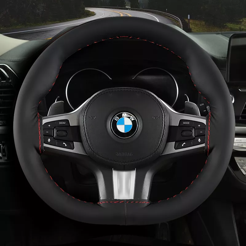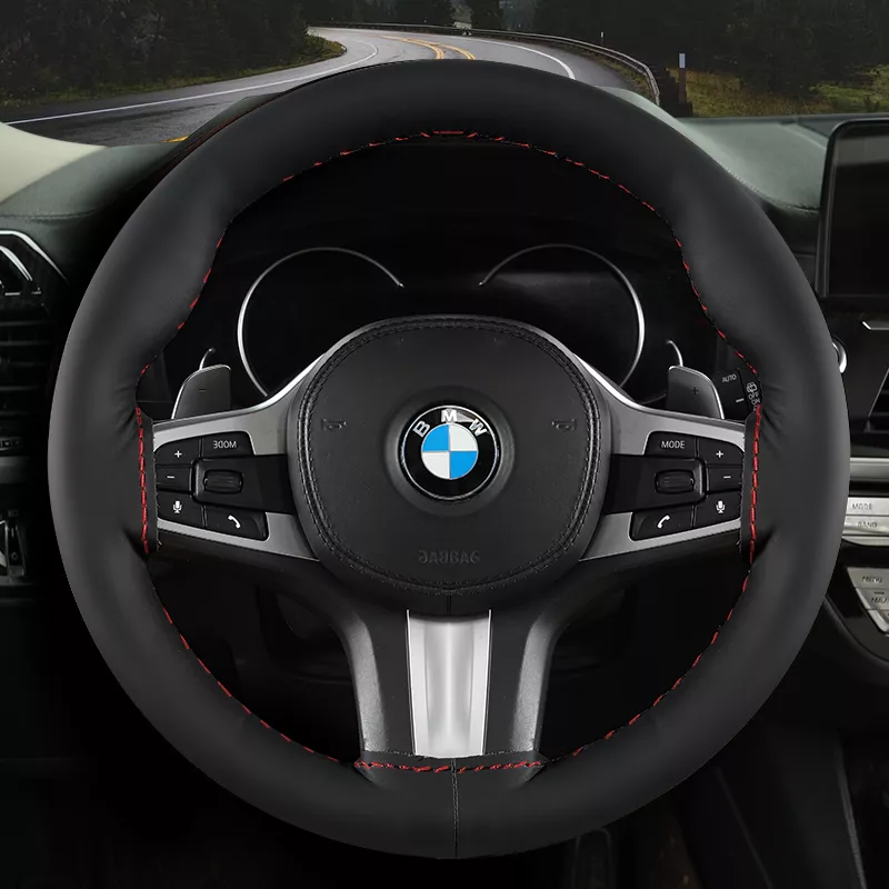 Handmade Genuine Leather Anti-Slip Steering Wheel Cover for BMW