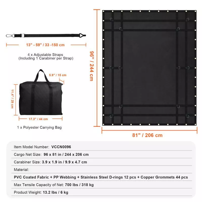 • Customizable Fit: With adjustable straps and multiple fixed points, it’s easy to tailor the net to your specific load and vehicle size.