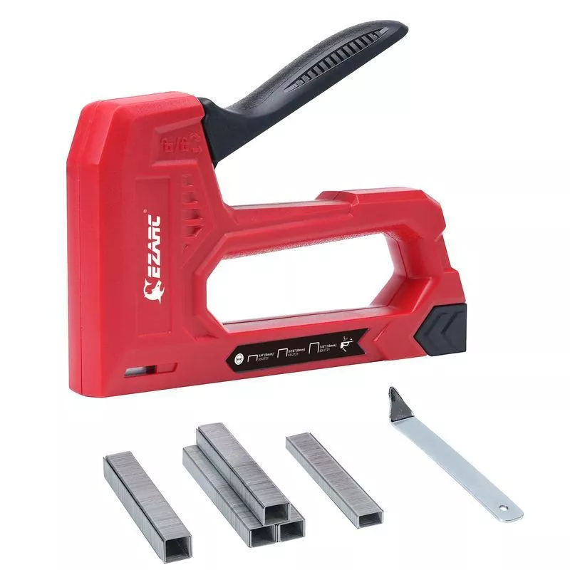This lightweight staple gun, weighing only 5.1 oz., is crafted from high-quality ABS plastic, making it durable yet comfortable for prolonged use. The ergonomically curved handle with a textured, non-slip grip ensures that you can work on your projects without experiencing hand fatigue. The included staple remover and 1,000 staples in three different sizes (1/4″, 5/16″, and 3/8″) make this kit a complete solution for all your light-duty stapling needs.