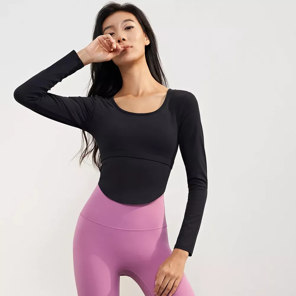 This long sleeve yoga top has become my go-to workout gear. It’s not only functional with its anti-pilling and quick-dry features but also fashionable thanks to its round neck design.