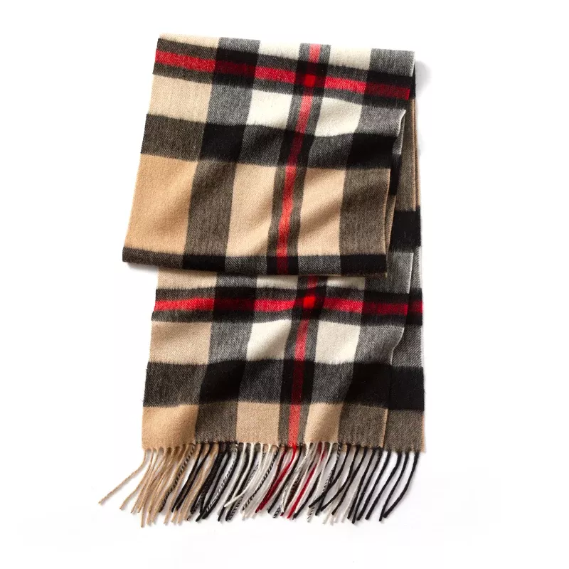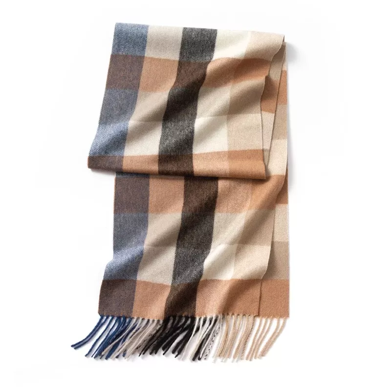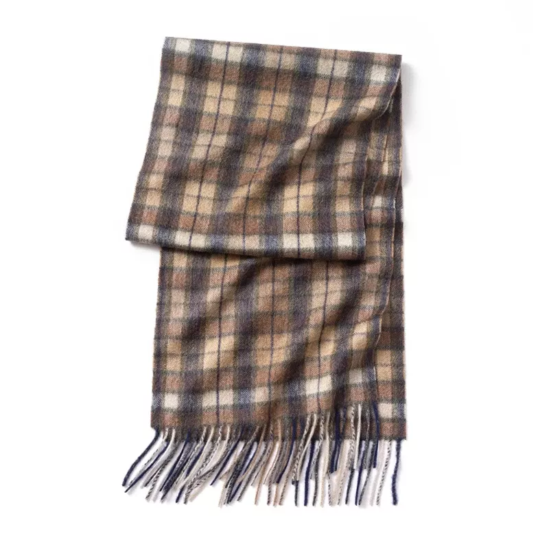 What sets this scarf apart is its luxurious cashmere fabric, known for its softness and ability to retain warmth without adding bulk. Unlike ordinary scarves, this one combines comfort with elegance, ensuring you not only feel good but look good too. The rich plaid pattern and tassel details bring a touch of sophistication, making it a must-have for fashion enthusiasts.