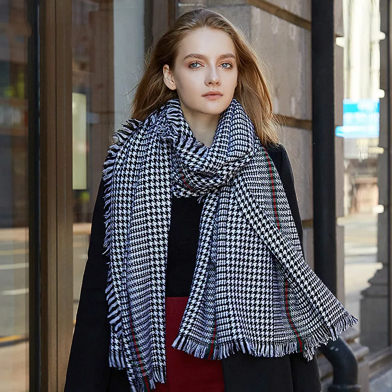 Luxury Wool Plaid Scarf for Women