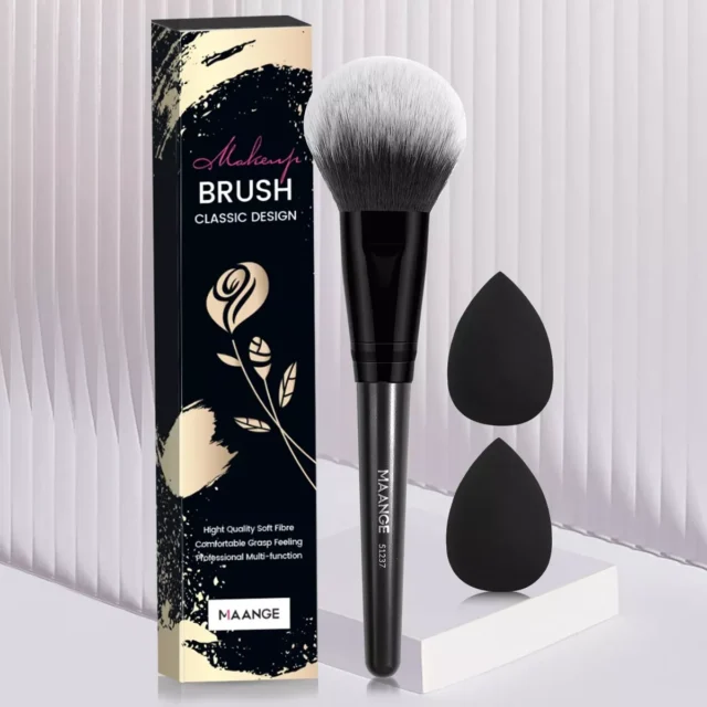 This Makeup Brush and Sponge Set makes achieving flawless makeup effortless. The brush is ideal for all types of foundations, including liquid and cream, and the included sponges are perfect for setting your makeup. The brush’s large size allows for quick application, while its soft bristles ensure your makeup goes on smoothly without absorbing excess product.