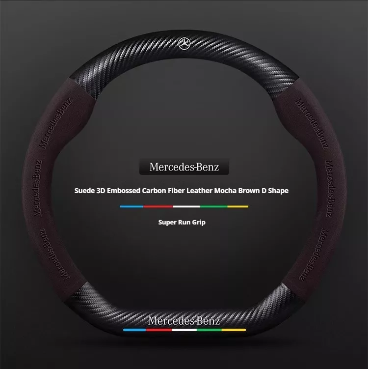 Not all steering wheel covers are created equal. This one combines the elegance of suede with the durability of carbon fiber, offering a sophisticated upgrade for your Mercedes-Benz. Its ergonomic design not only enhances aesthetics but also provides a firm, slip-resistant grip that improves driving safety and comfort.