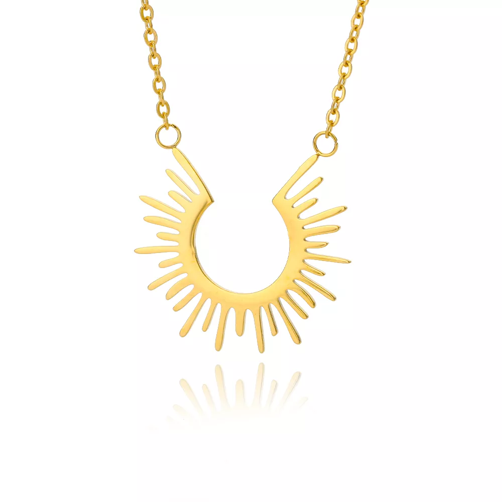 • Unique Design: Features a geometric half-circle sun pendant that stands out.