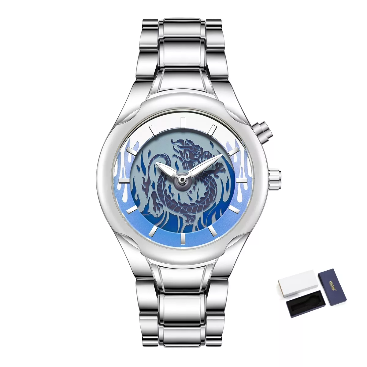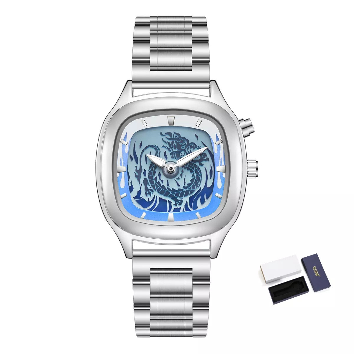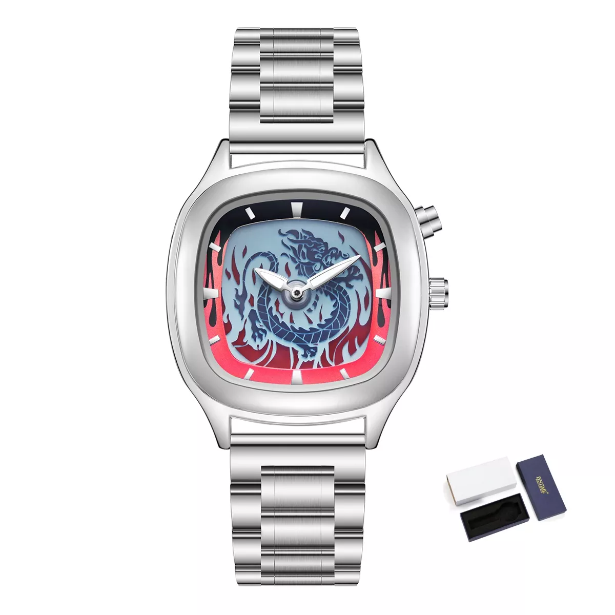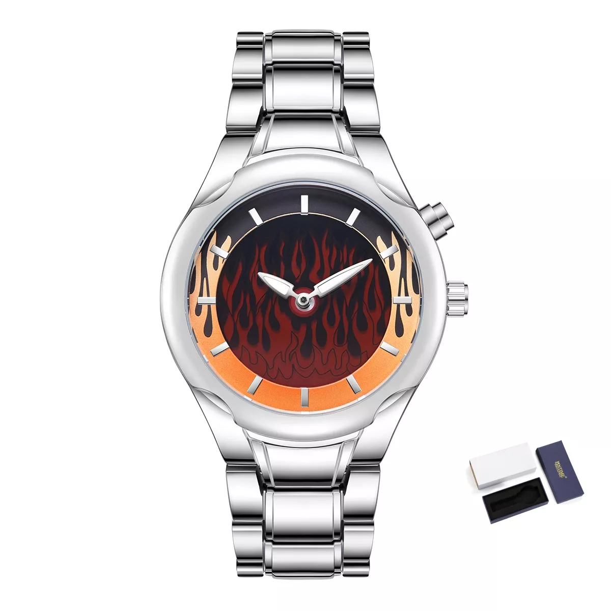 This watch is not just about telling time; it’s an expression of personality and style. The vibrant flame and dragon dial make it stand out in any crowd, perfect for fashion-forward individuals who appreciate artistic details. Its waterproof feature allows worry-free wear during daily activities, and the stainless steel construction means it can handle your active lifestyle. Whether you’re gifting it or adding to your own collection, this watch brings together originality and practicality in one sleek package.