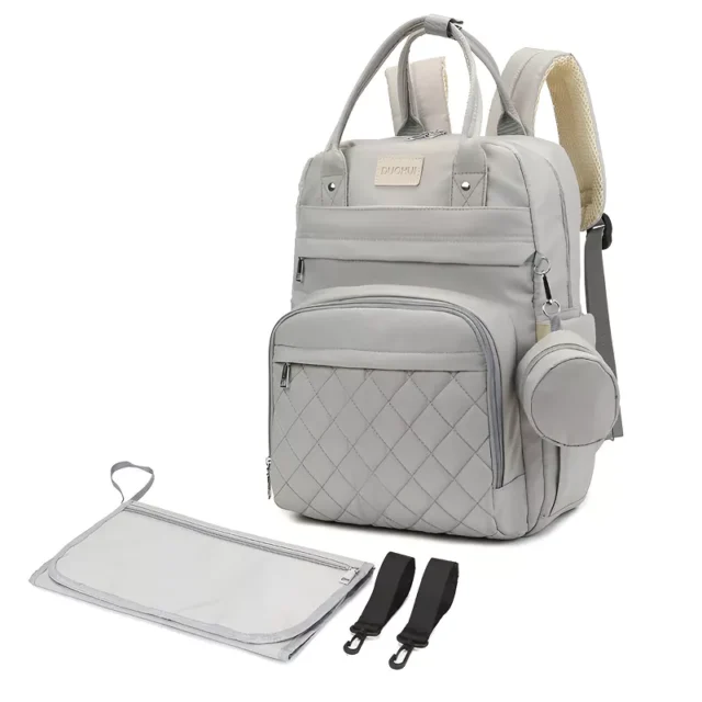 This diaper backpack is designed to make your life easier. Its thoughtful features, like the stroller hooks and fixing strap for a suitcase trolley, ensure that you can carry everything you need without juggling multiple bags. The included changing pad provides comfort and cleanliness for diaper changes on the go, while the small pacifier bag ensures your baby’s pacifier stays hygienic and within arm’s reach. With its stylish yet practical design, this backpack is the perfect accessory for any parent looking to stay organized while on the move.