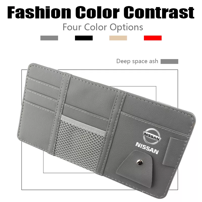 Crafted with high-quality PU leather, this sun visor organizer adds a touch of elegance to your car’s interior. The slim, lightweight design ensures it doesn’t obstruct your view, while the secure zipper closure keeps your items safely in place. Available in four sophisticated colors – black, gray, red, and beige – it blends seamlessly with your car’s aesthetic.