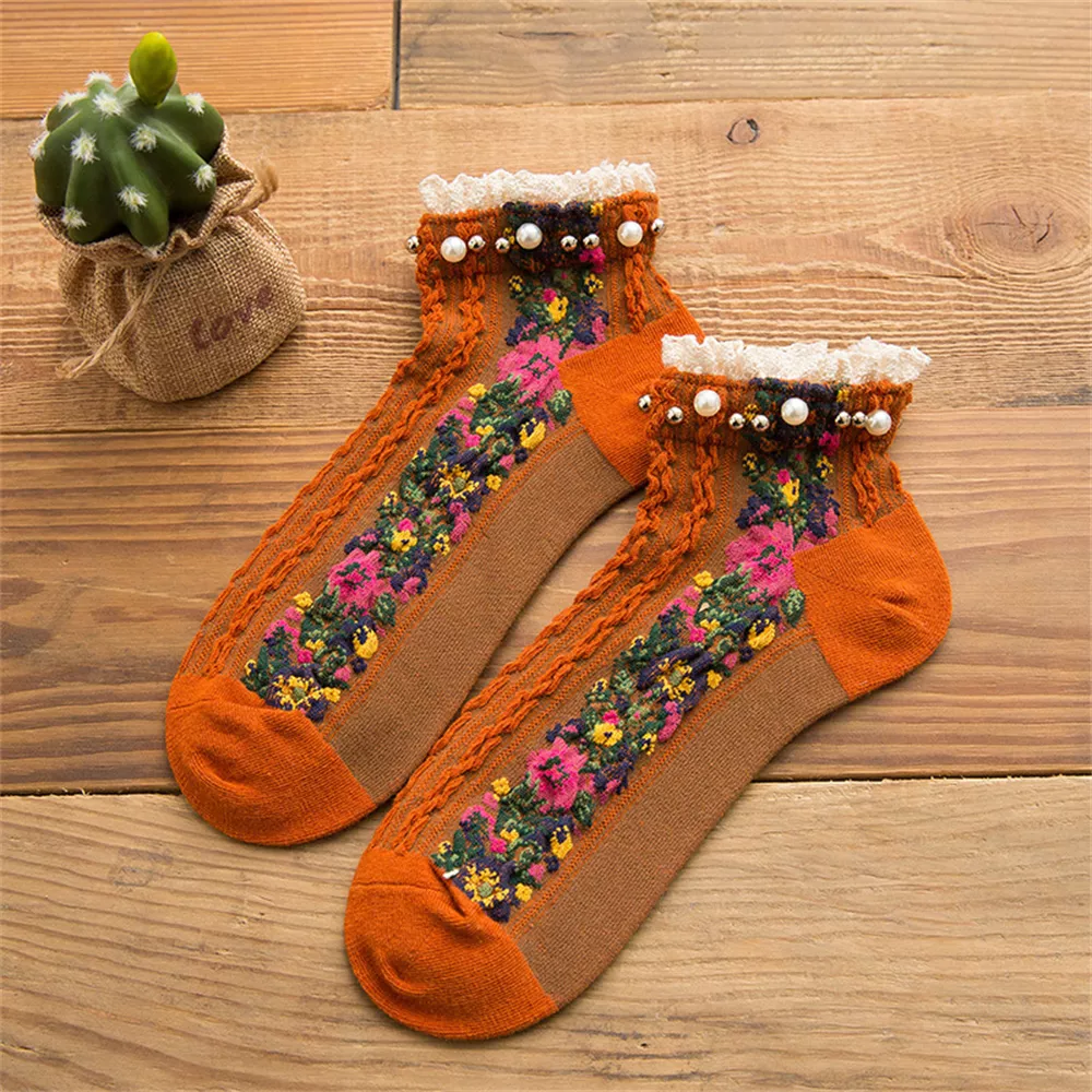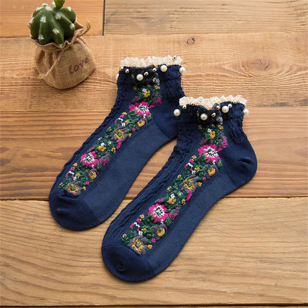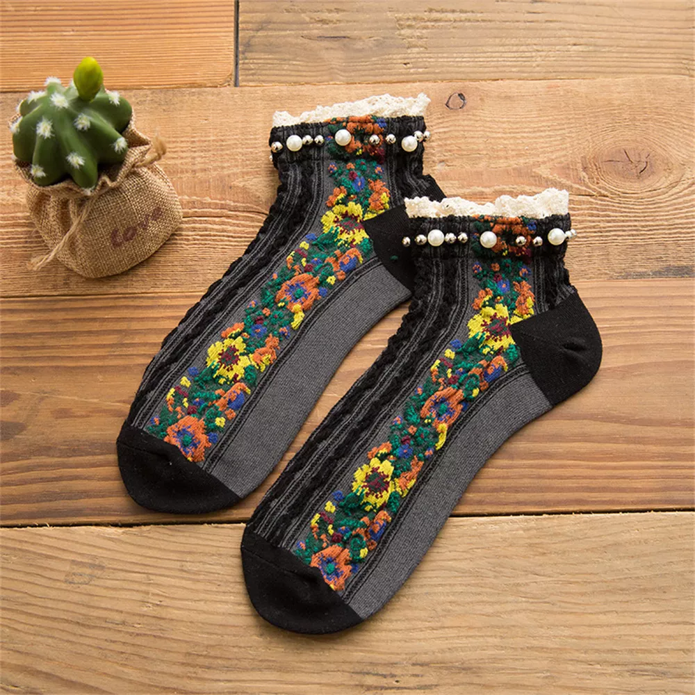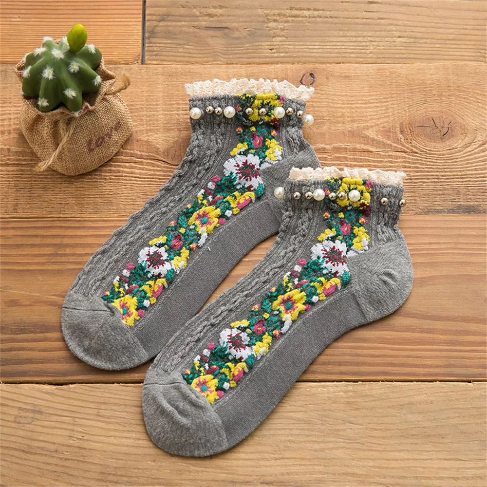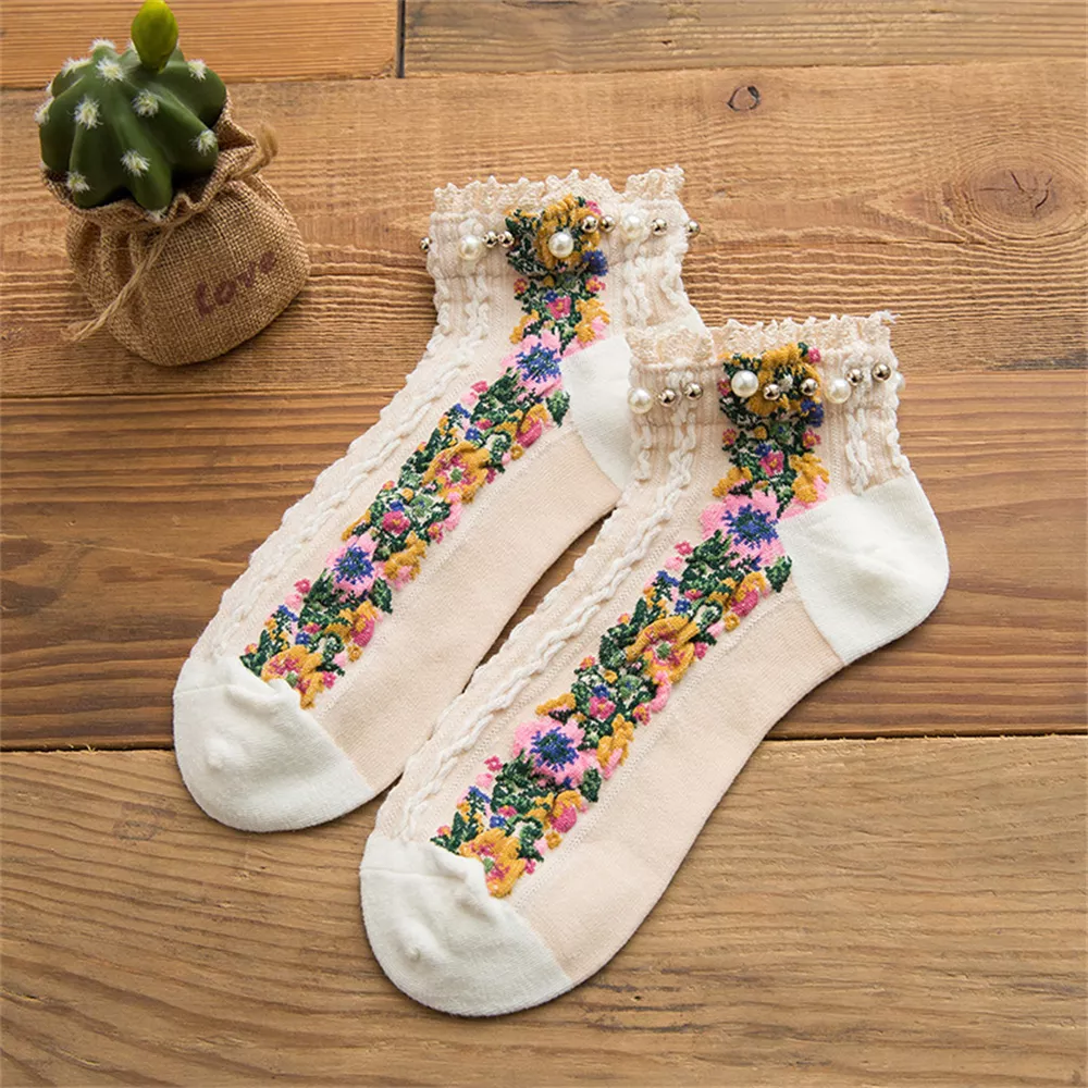 Step into Timeless Elegance with Retro Lolita Floral Pearl Ankle Socks