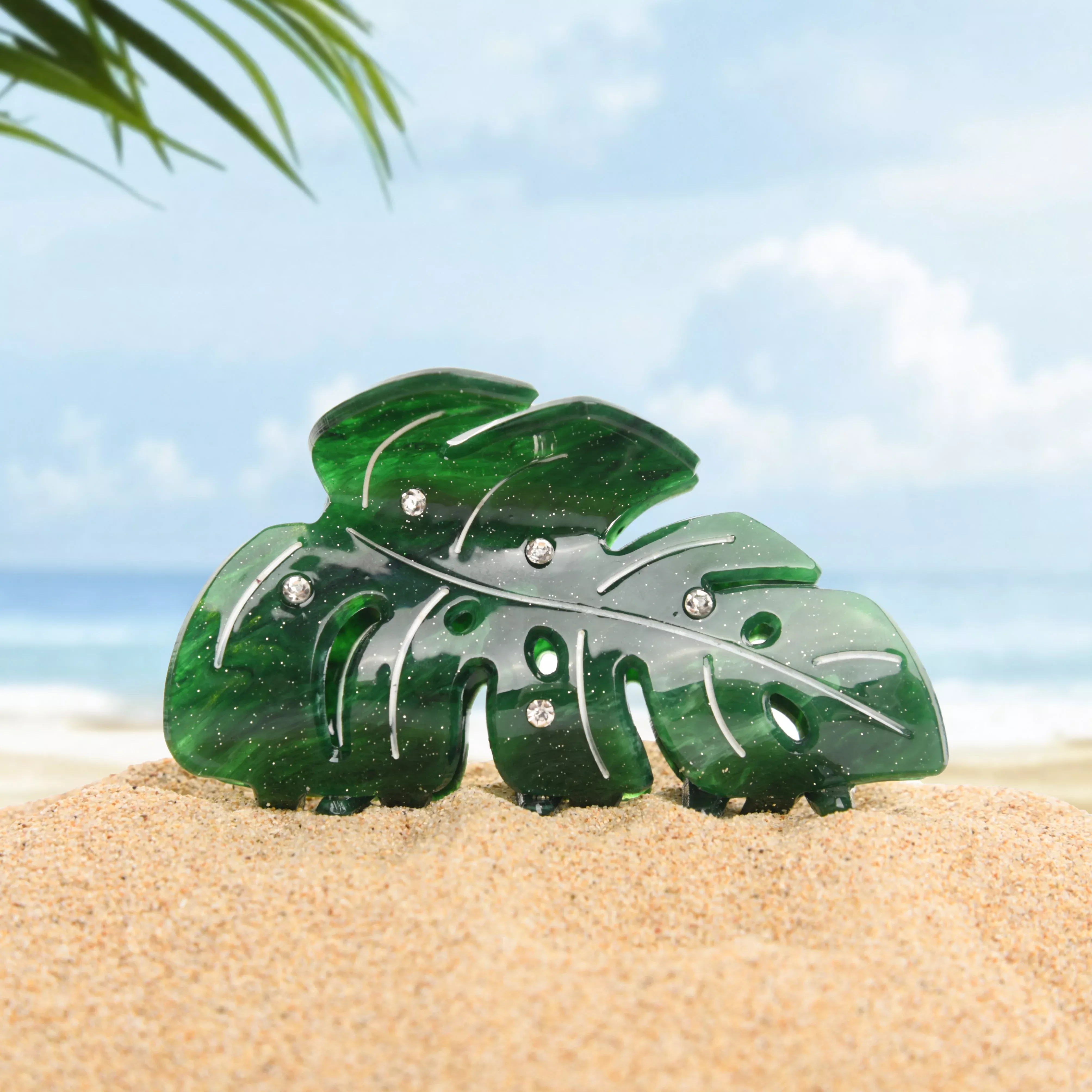 Rhinestone Leaf Turtle Hair Claw Clip – Elegant Acetate Hair Accessory