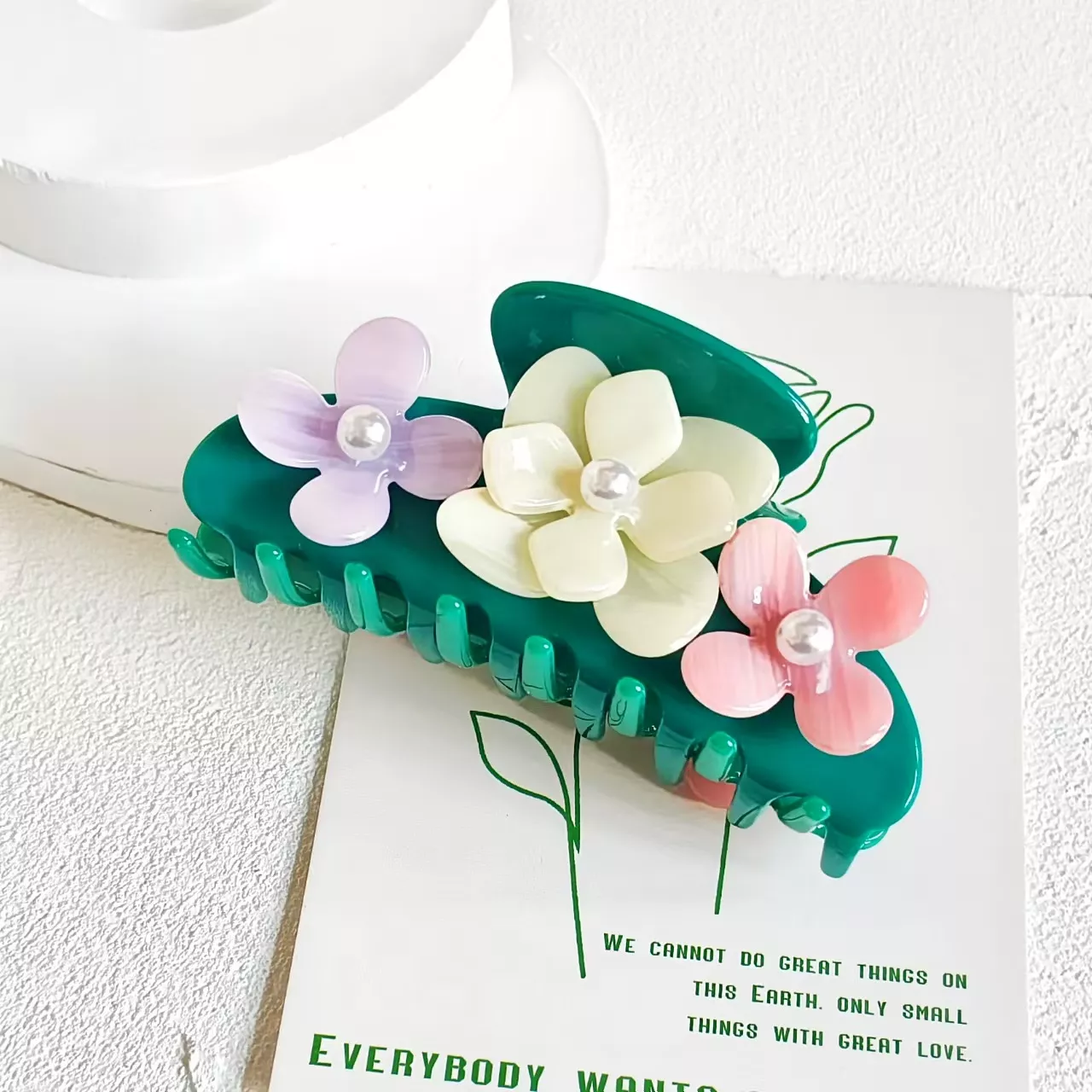 Elevate your hairstyle with this stunning French-inspired Romantic Pearl Flower Hair Claw Clip — a must-have hair accessory for every modern woman. Crafted from high-quality acetate, this hair claw brings together beauty and function in one chic design. Its delicate pearl flower detail adds a soft, feminine touch, making it perfect for both casual and dressy occasions.