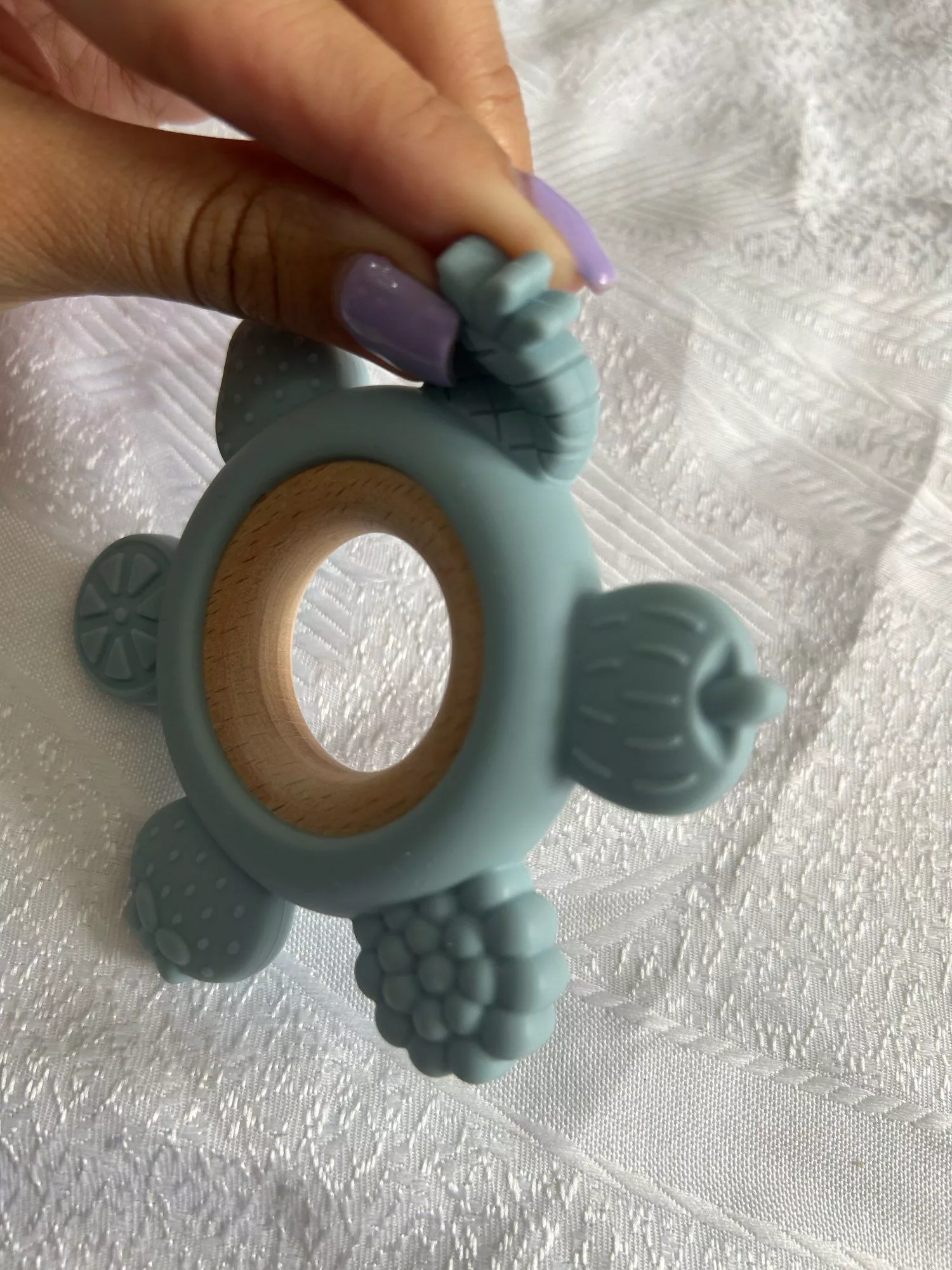 Teething can be a challenging time for both babies and parents. That’s why our Silicone Teething Ring is designed to be more than just a teether—it’s a sensory experience. Shaped like a cute animal, it captures your baby’s attention, encouraging interaction and exploration. The lightweight design makes it easy for tiny hands to grip, while the smooth surface is gentle on delicate gums. Whether your baby is at home, in the car, or out on a stroll, this teething ring is the perfect companion to soothe discomfort and keep your little one entertained.