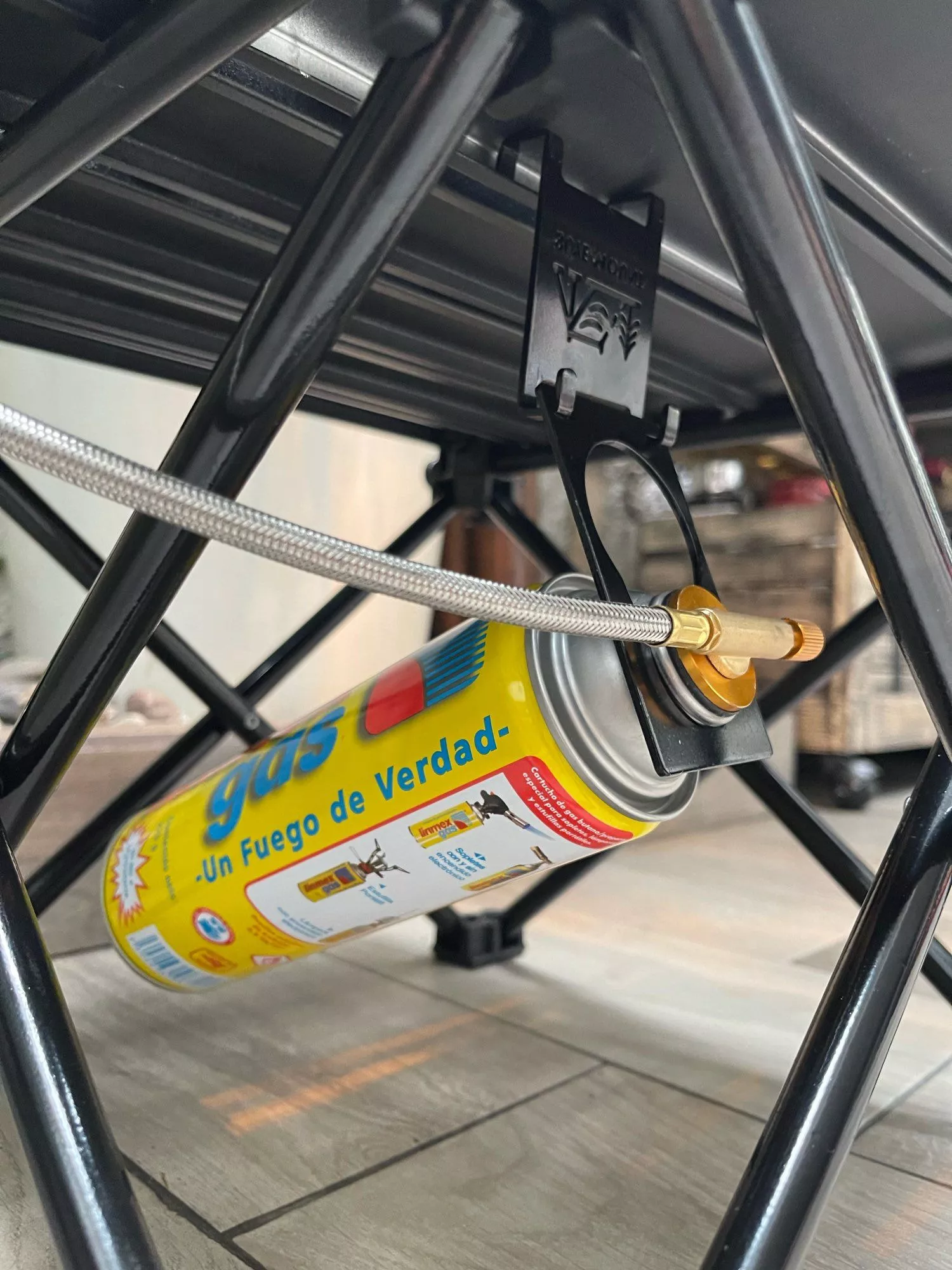 The Stainless Steel Camping Gas Canister Hook stands out for its simple, intuitive design, ensuring that setting up your outdoor space is a breeze. Compatible with all types of air tanks, it is easily installed on various surfaces like camping tables, nightstands, and even coffee tables. Crafted from thickened cast iron, it promises durability and strength, ensuring your heavy tanks remain securely in place.