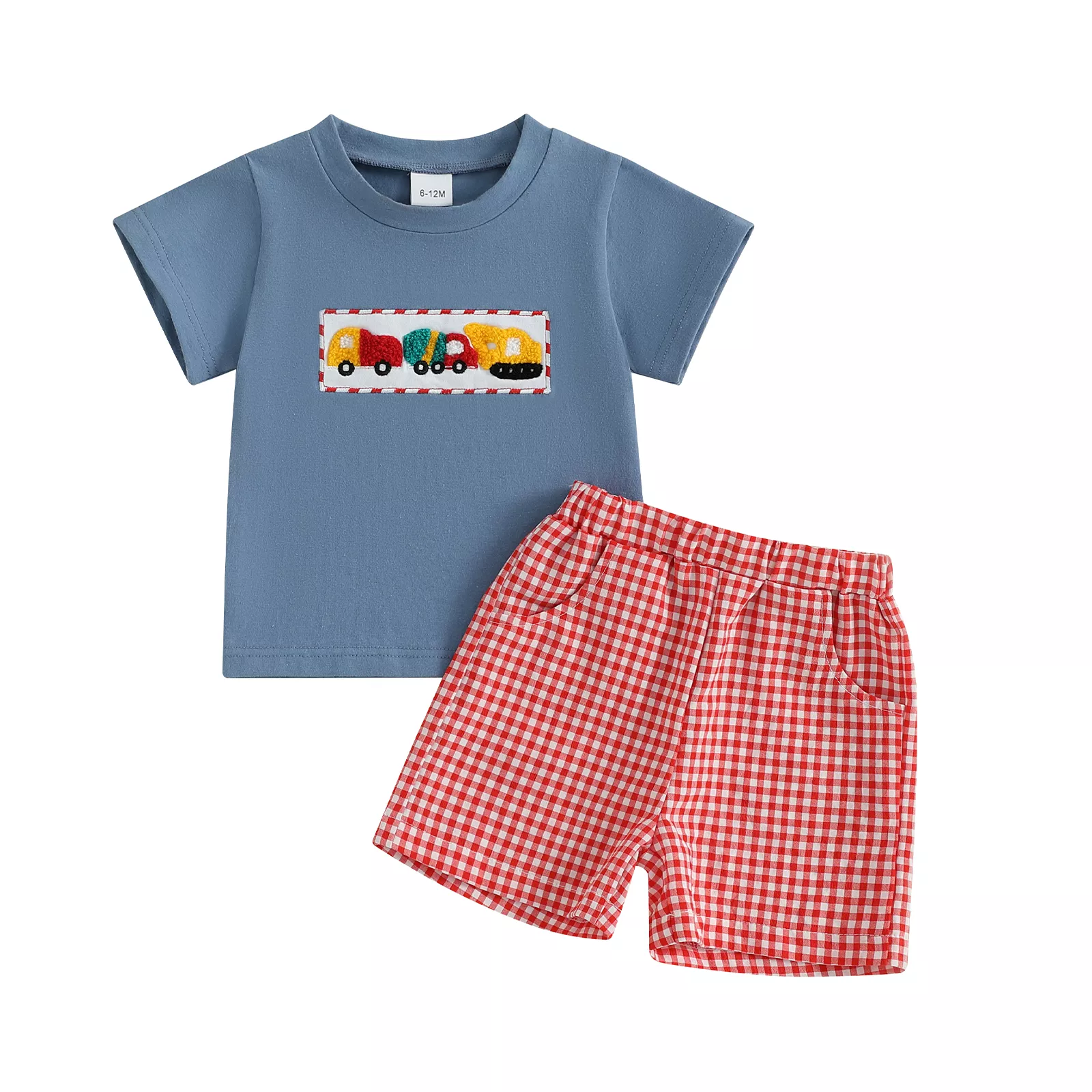• 2-piece outfit includes: 1 embroidered car t-shirt and 1 plaid shorts