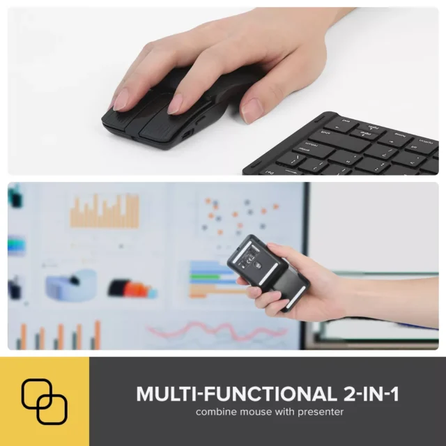 • Multi-Functionality: Not just a mouse, this device also serves as a laser pointer and page-turner. Ideal for presentations, reading, and multitasking, it gives you the flexibility to perform various tasks with a single device.