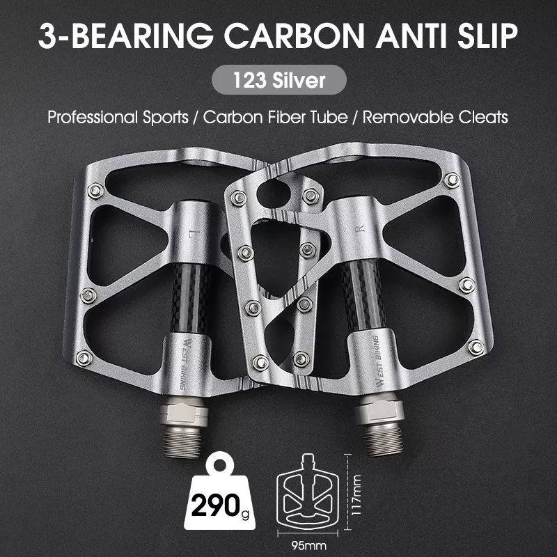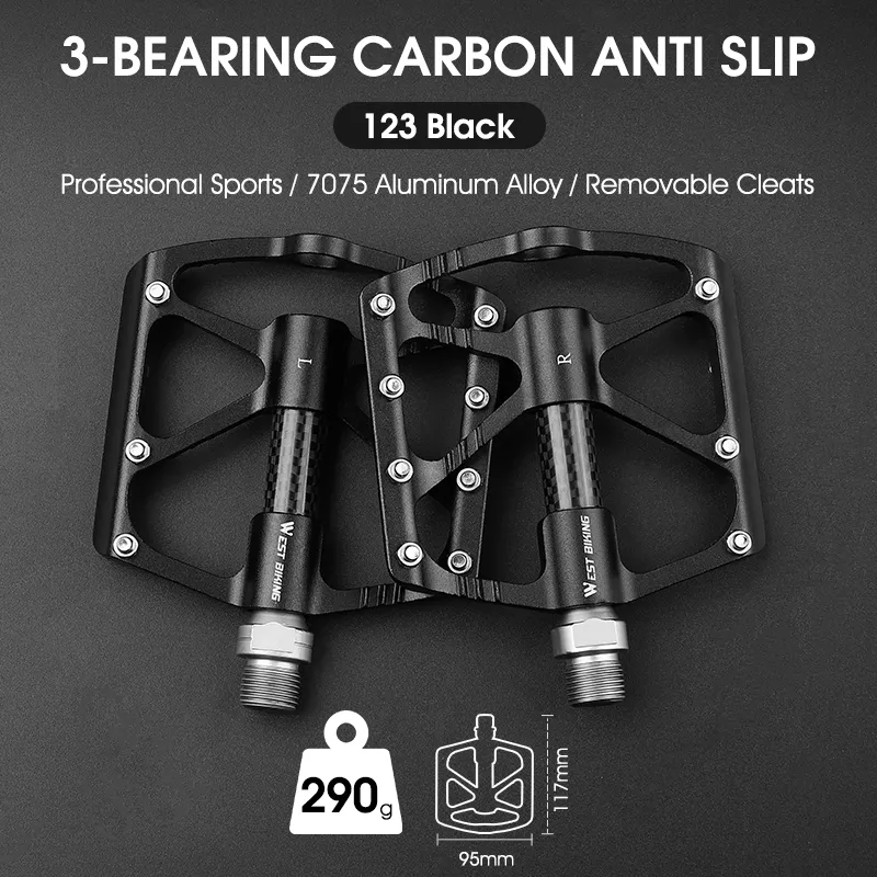 Crafted with a rugged aluminum alloy body and a featherlight carbon fiber axle sleeve, these pedals are incredibly durable while staying impressively light. The three-bearing design ensures ultra-smooth rotation, reducing friction and improving pedaling efficiency. From daily commutes to weekend trail adventures, these pedals offer the reliability and responsiveness you need under any conditions.