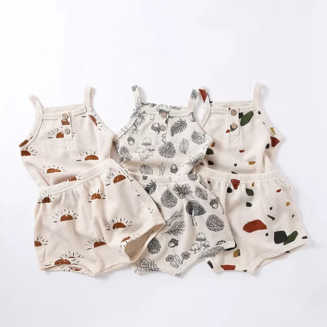 Made from high-quality cotton, this outfit feels gentle against delicate baby skin. The pullover-style tank top is easy to slip on, while the elastic waistband on the shorts ensures a snug yet flexible fit. The playful all-over print adds a touch of fun to the minimalist design, making it suitable for both baby boys and girls. Whether it’s nap time or playtime, this set keeps your child looking effortlessly adorable.