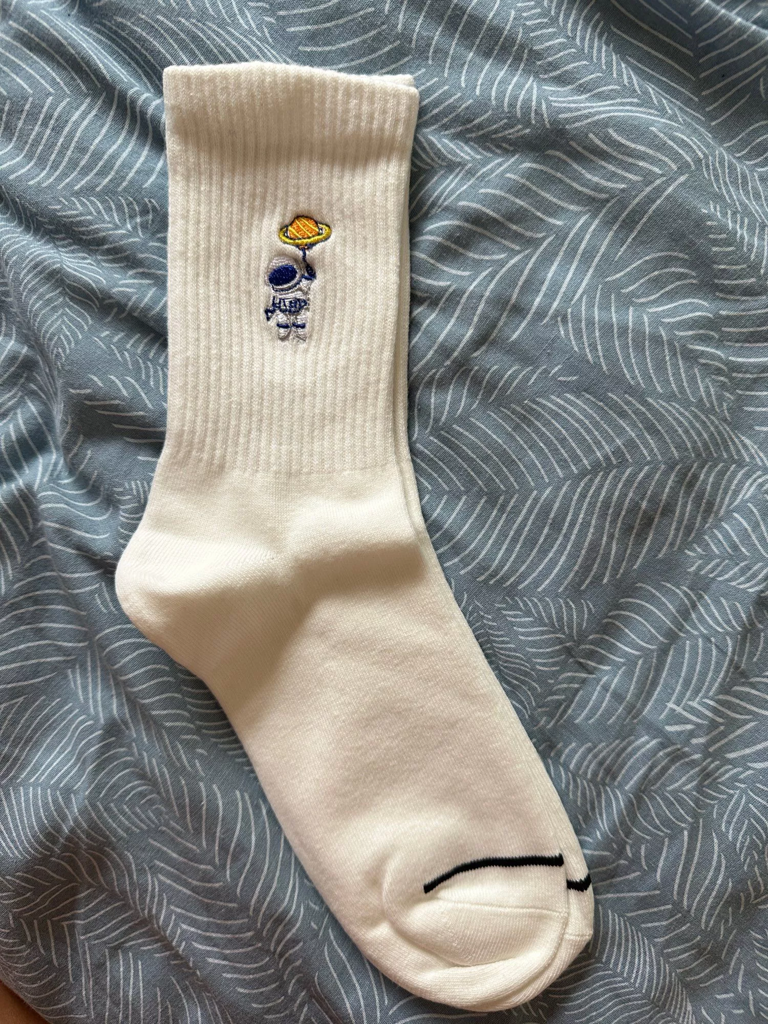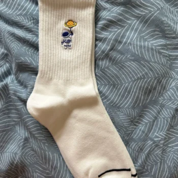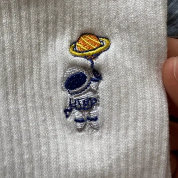 • Unique Embroidery: Featuring a detailed astronaut and space-themed embroidery, these socks are perfect for adding a touch of whimsy to any outfit.