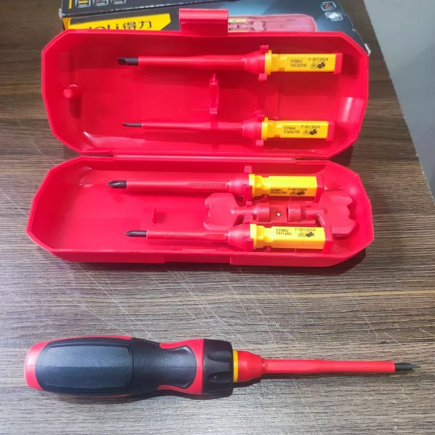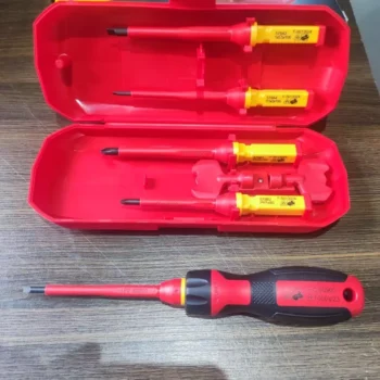 Upgrade your toolkit with the VDE Insulated Screwdriver Set, the ultimate solution for any professional or DIY enthusiast working with electrical installations. Designed to provide both safety and efficiency, this comprehensive set is a must-have for anyone handling live circuits. Crafted with precision, each screwdriver is rigorously tested up to 1000V, ensuring you can work confidently in high-voltage environments. Whether you’re tightening screws in a junction box or performing intricate repairs, this set gives you the peace of mind and performance you need.