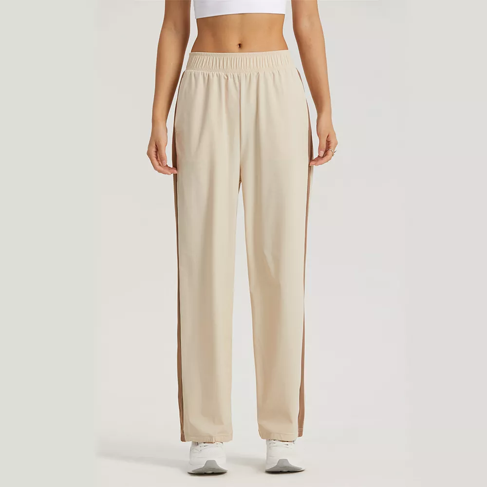 Never thought I'd find workout pants that would be both comfortable and chic until I came across these sports joggers! Their wide-leg fit guarantees unrestricted movement making them ideal for yoga or running while the trendy striped design makes them stand out in terms of style.