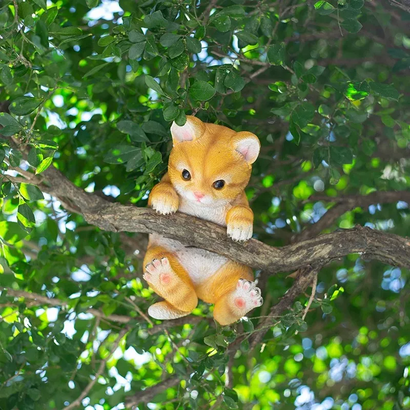 Bring a touch of playful charm to your garden, balcony, or courtyard with this delightful resin cat pendant. Expertly handcrafted, this realistic simulation of a tree climbing cat captures the curiosity and grace of a kitten in motion. Its finely detailed features and lifelike pose make it a captivating addition to any outdoor or indoor space.